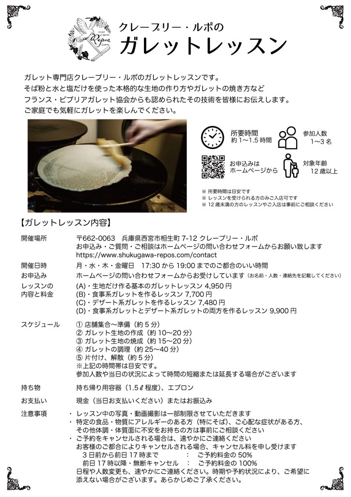 ・詳しくは下記のガレットレッスンの案内チラシをご覧ください。
